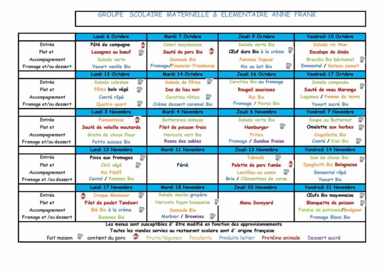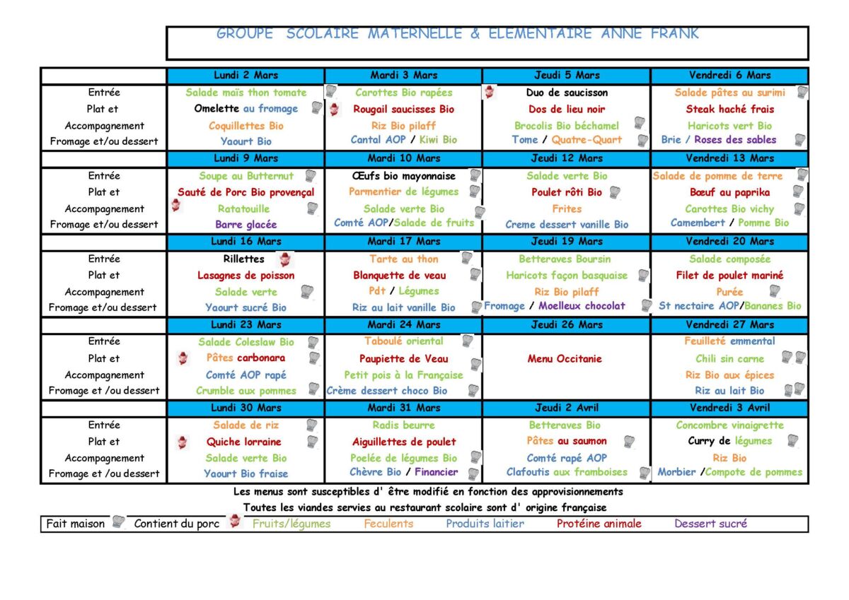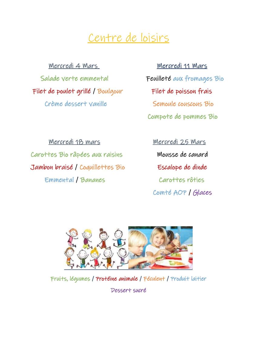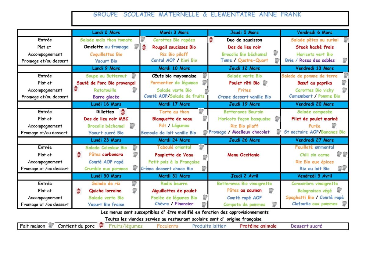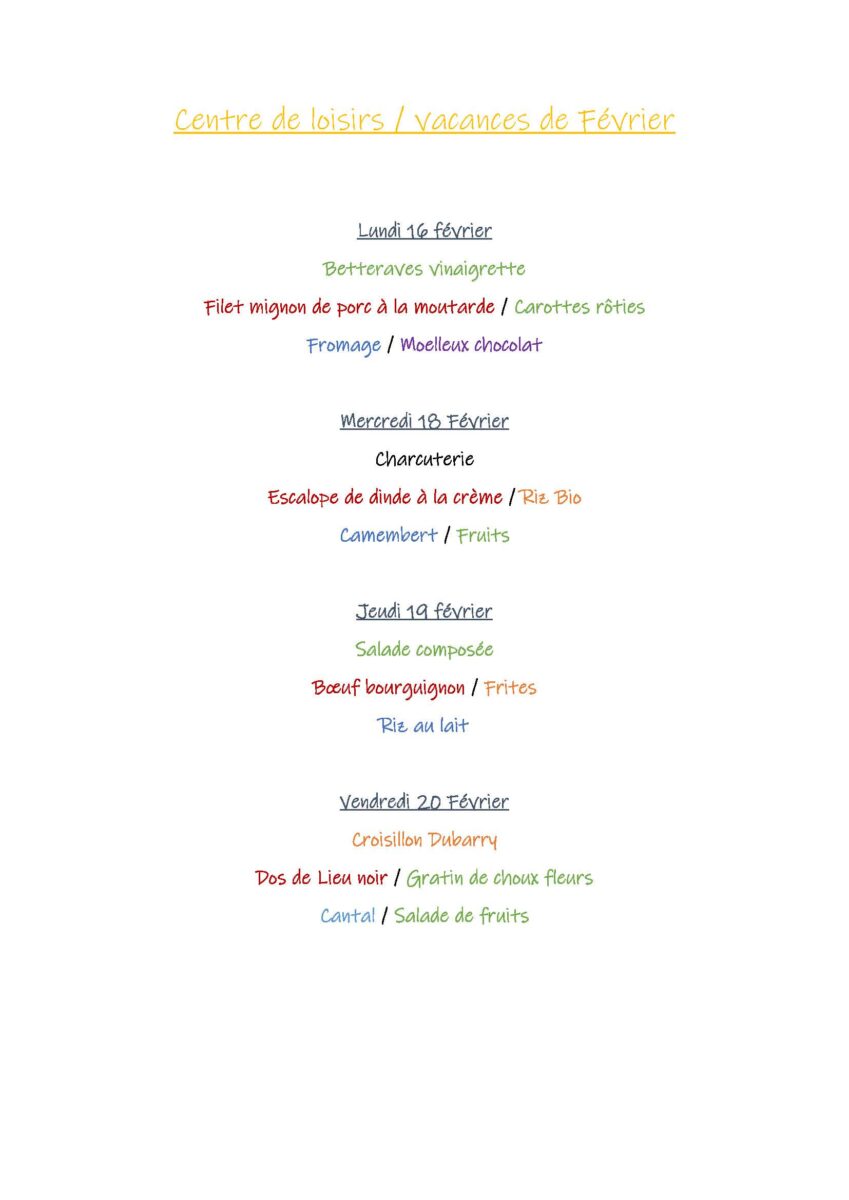 Menus Restaurant Scolaire