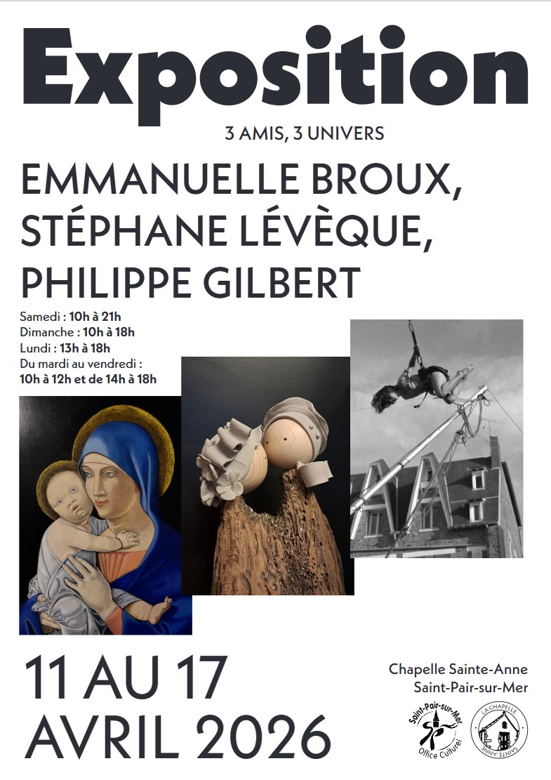 Exposition à la Chapelle Sainte-Anne – Emmanuelle BROUX, Stéphane LEVEQUE & Philippe GILBERT – Du 11 au 17 avril 2026