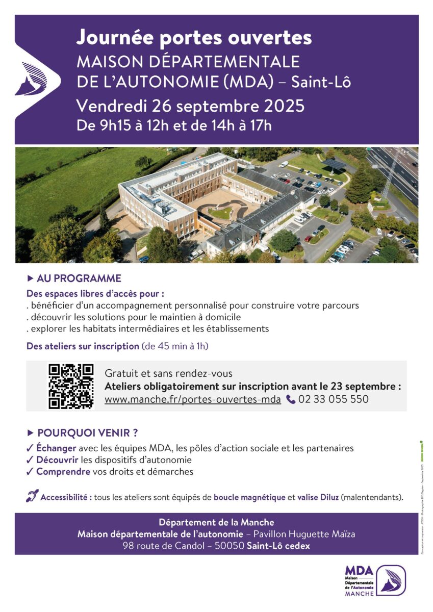 Journée Portes Ouvertes Maison Départementale de l’Autonomie Journée Portes Ouvertes Maison Départementale de l’Autonomie Vendredi 26 septembre 2025 9h15-12h00 / 14h00-17h00 St-Lô Skip back to main navigation