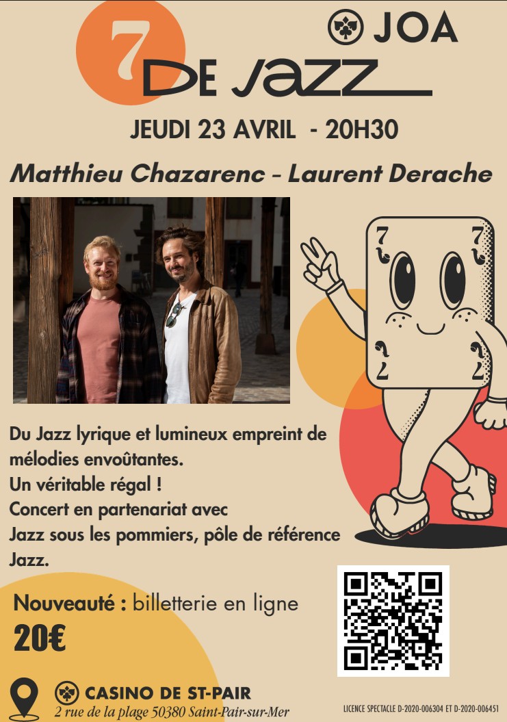 Concert exceptionnel de deux artistes internationaux , Laurent DERACHE et Matthieu CHAZARENC en partenariat avec « Jazz sous les Pommiers ».
