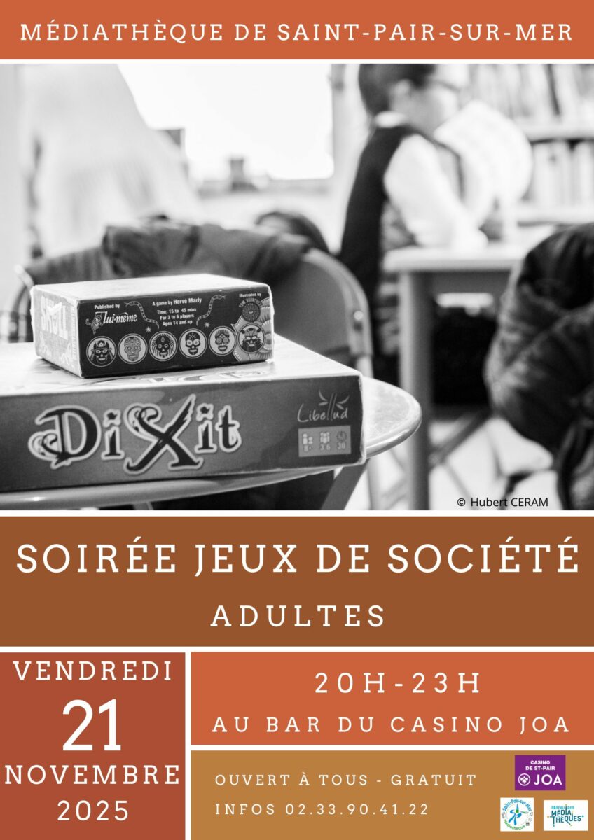 Soirée jeux de société (adultes) – Vendredi 21 novembre de 20h à 23h – Casino JOA de Saint-Pair-sur-Mer