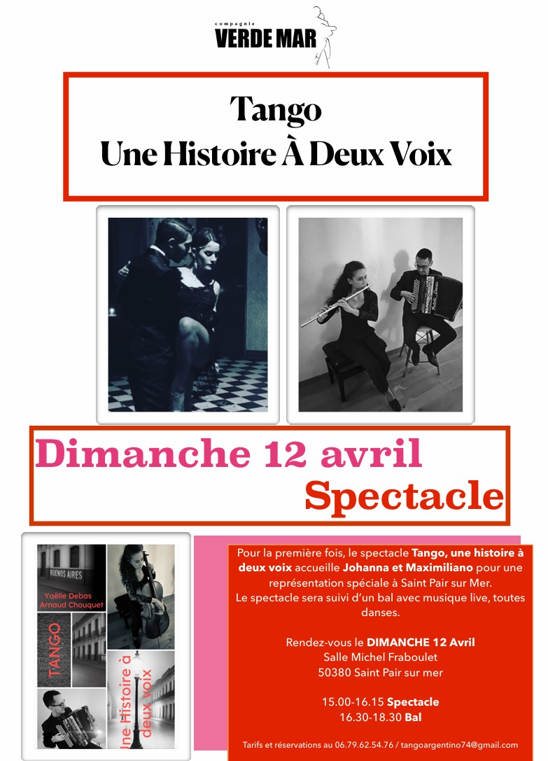 TANGO, une histoire à deux voix par la compagnie VERDE MAR – Dimanche 12 Avril de 15h à 18h30 – salle Michel Fraboulet